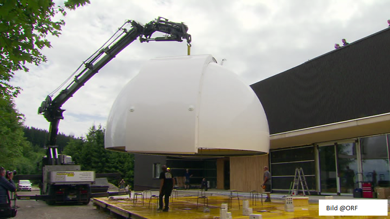 Auch bei der Montage der zweiten Kuppel für die Sternwarte am Haunsberg war Rachbauer Kran Salzburg-Siezenheim im Einsatz.
