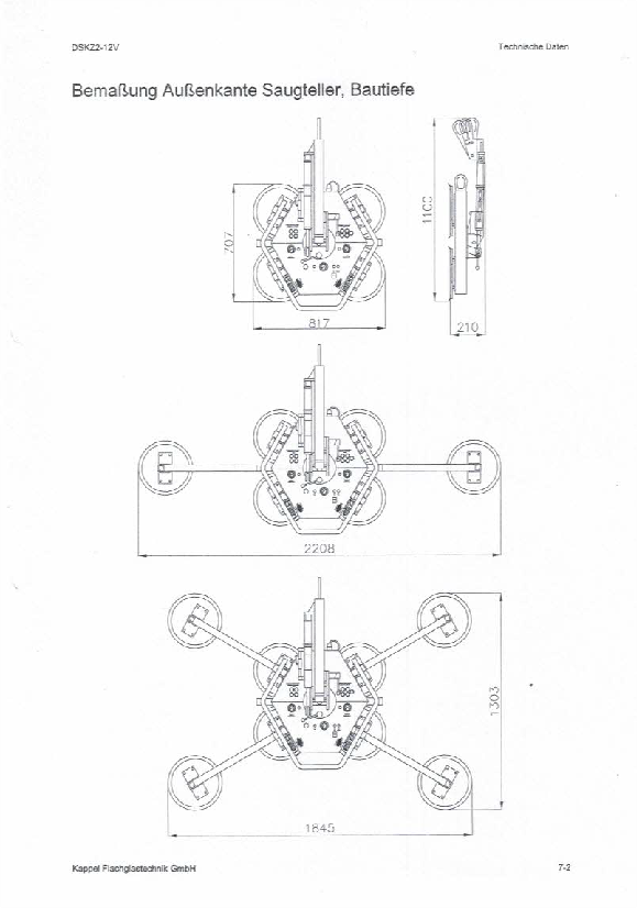• 600 kg Tragkraft mit 8 Saugteller 150K